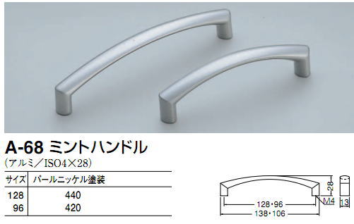 シロクマ A-68・家具用取手、ハンドル一覧・家具用ツマミ、耐震ラッチ一覧【商品の検索方法】・シロクマ 36Cカタログの品番から! 【例】シロクマ HB-78・取付ビスピッチを入力して! 【例】シロクマ 数字mm