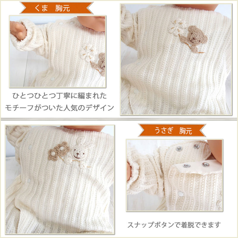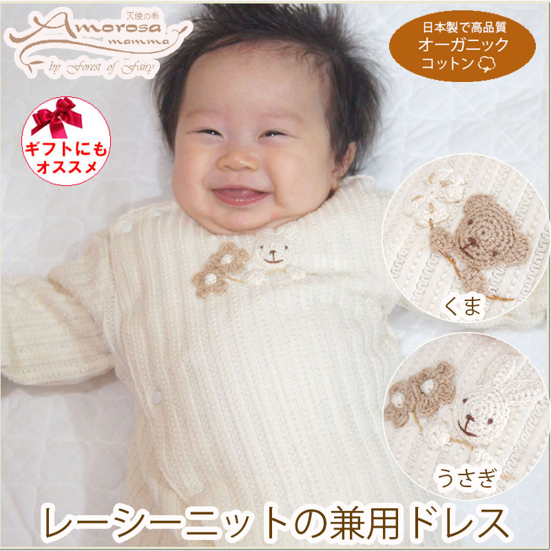手編みモチーフの兼用ドレス ツーウェイオール 赤ちゃんの肌に優しいオーガニックコットン 日本製で高品質 *透かし編みの高級感のある素材です。