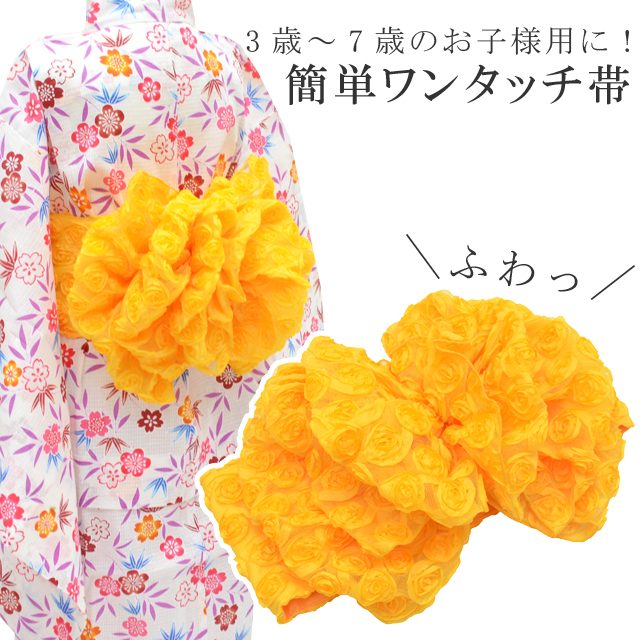 浴衣 子供 女の子 ゆかた 簡単帯 かんたん帯 ワンタッチ帯 作り帯 3歳 4歳 5歳 6歳 7歳 キッズ ジュニア 日本製 ポリエステル 【フラワー】 黄色 sin7739-bob08 【新品】【KIMONO梅千代】